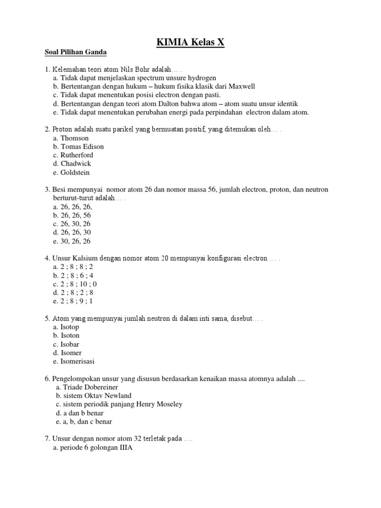 Soal kimia kelas 10 atom. Maka kami disini memberikan contoh soal kimia Kelas 10 untul sekolah SMAMASTM dan SMK disemester 1 dan 2 lengkap dengan Jawabannya sekolah menengah atas SMAMASTM dan SMK. Elektron mengelilingi inti atom dalam suatu lintasan dengan tingkatan energi tertentu merupakan model atom. Soal Kimia Kelas 10.